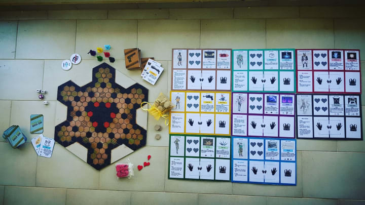 My friends and I gathering around a table, inside or outside that is. Even at the park, the neighbors yard or the street, surrounded by feral cats. Game was game and in my head it will always be exactly that. My mom was a doctor. It sounds weird to put this information in here but that's perhaps where the big problems begun. She was inspired too with what she did and loved her job. But it wasn't just helping others. She was raised in a different society my mother. She knew that a doctor got all the attention. She was not only smart, sadly she was cursed with a horrible self-awareness, she knew she was smart and that's what she thought made her better than others. As a kid the jobs of a cleaner, a fisherman, a farmer all made perfect sense to me. Imagining myself in their shoes made me happy, but not my mother. I loved her but she was a great big "snob". She would say things like "Study, or you'll end up cleaning houses like that lady over there" But I loved that lady over there. She cleaned our school and she helped me find my lost jacket. My point of view was different than my mother's and board games helped me escape from that too. If anything at least my mother hated computers. Silver lining, she wanted me to spend all my free time with my friends and that's exactly what I did.
