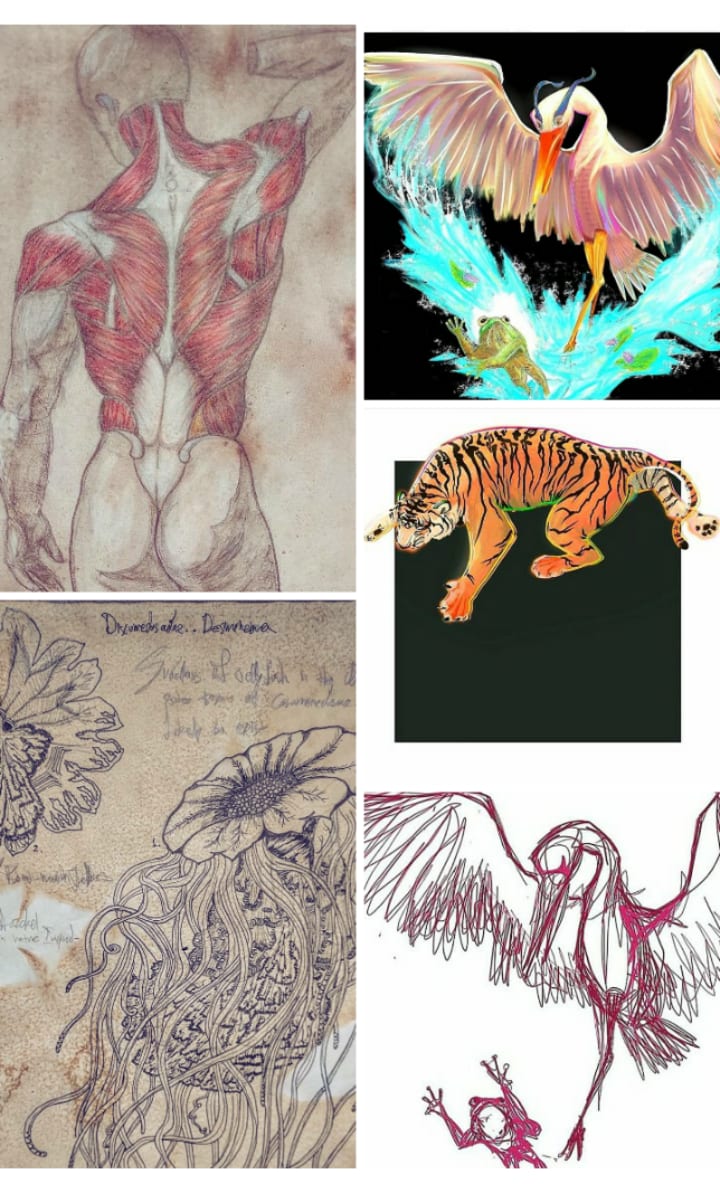 Over the many years, I have become an artist of lots and lots of media. Acrylics, paper, cardboard, clay and the word. My trusty tools: scissors and hands. Pens and colors and even artworks in digital. My scientific artwork was showcased in the Artist lounge magazine of London recently. My first big step I called it (my olny step perhaps) . But it is maybe a baby step to what can follow. I tought myself a lot of things. What school and universtiy could never offer me, I got by studying on platforms online, like "Udemy" where I earned myself a certificate in children's writing, color theory and psychology, board game design and even Industry standart game design and game narrative, writing essentials.