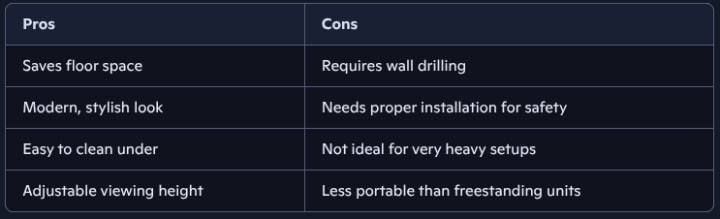 Q4: Is it safe for children’s rooms? A: Yes, when securely mounted, floating stands reduce tip-over risks compared to freestanding units.