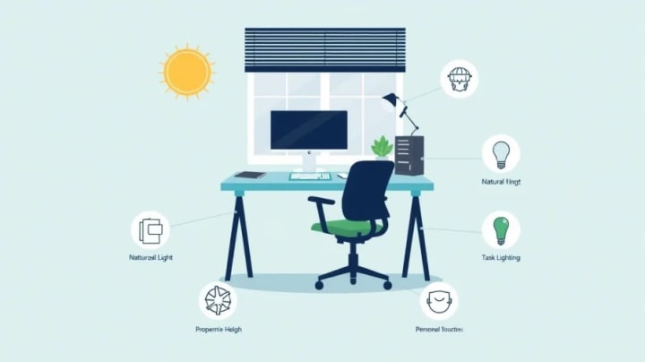 Position your screen at an arm’s length, aiming for a “forearm’s reach.” This setup is essential for preventing eye fatigue and preserving your energy throughout the day.