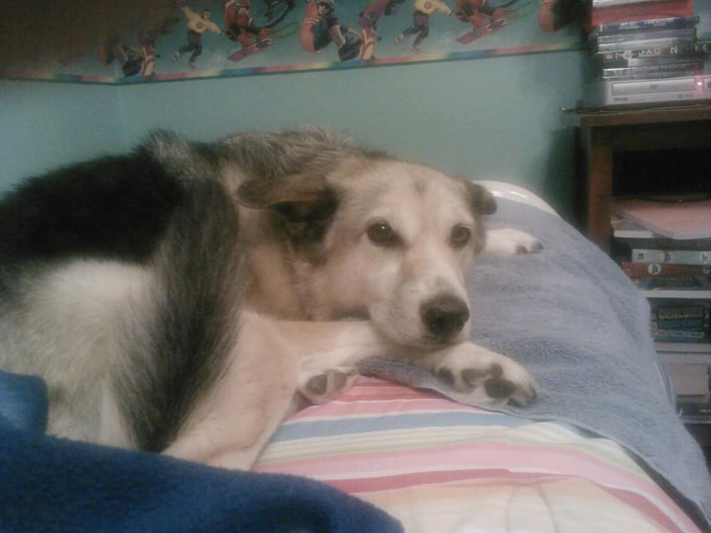 My dog, Kasey, stirred beneath me. She was a beautiful dog. One eye blue and one eye brown, half husky and half German Shepherd. We had almost called her “Cookie” because of the light brown colouring along her shoulders and hind quarters, with a blanket of black fur wrapping around the rest of her back. She was smart and obedient. She caught our eye immediately when she was in the shelter. We couldn’t fathom why she was left there for so long; we were inseparable after we adopted her. She was perfect.