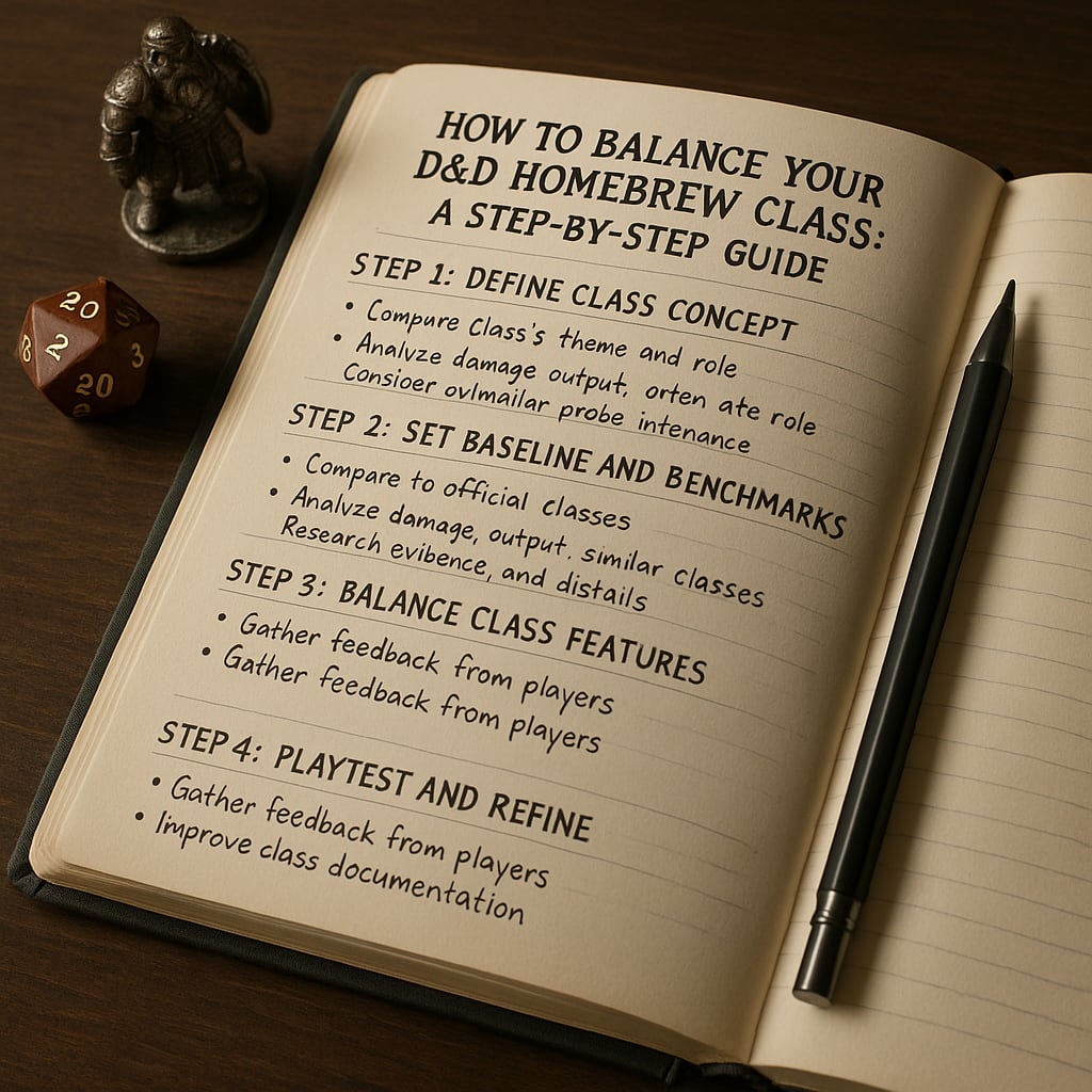 Balancing a homebrew class is both an art and a science. With careful planning, testing, and adjustments, you can create a class that is not only balanced but also a joy to play. Follow these steps, and your players will be begging to try out your unique creation in their next campaign.