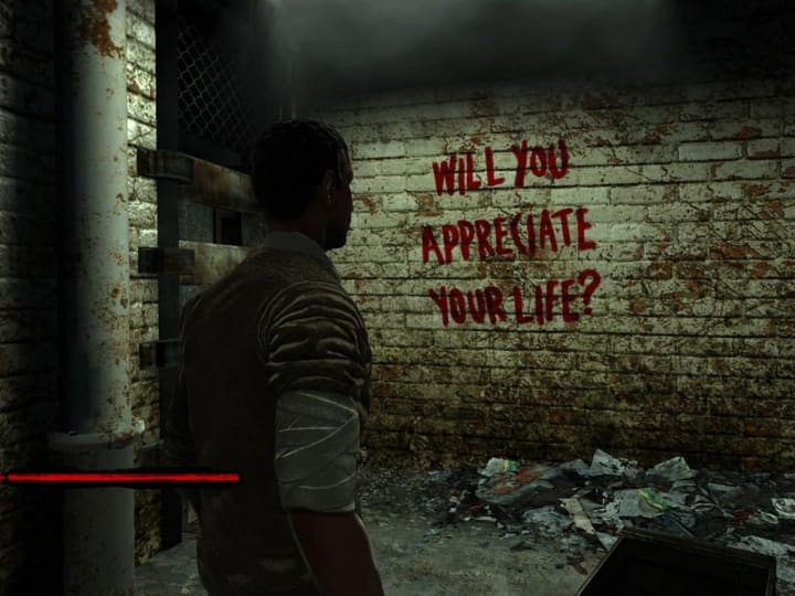 Both Saw and its sequel Saw 2: Flesh & Blood, released on the Xbox 360 and Playstation 3 in 2009 and 2010, take place between the first two films chronologically, and they assume the player already knows the general premise of the films, if not the plot of the first. For those who don't know, the Saw franchise revolves around a serial killer known as Jigsaw who doesn't actually kill his victims outright. He instead sets his victims in elaborate deathtraps where they can escape, but only if they're desperate enough to do the reprehensible. Unlike most killers in other movies, Jigsaw's motivation is actually relatively positive. His goal is to make the victims restore the value in the own lives. It would be heartwarming if failure to escape his contraptions wasn't so gruesome.