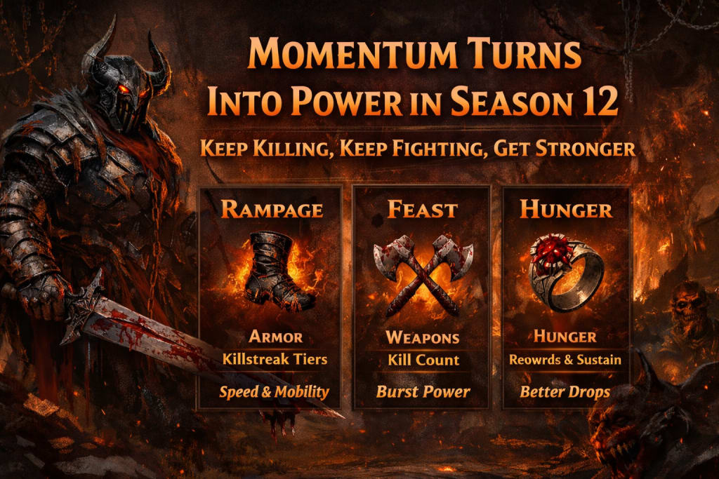 With the arrival of Bloodied Items, Season 12 transforms momentum itself into a resource. The faster you move, the longer you fight, and the more enemies you chain together, the stronger your character becomes. Stop pushing forward, and that power fades just as quickly.