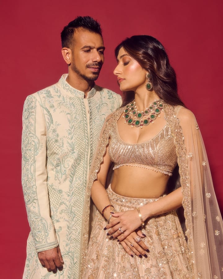They donned coordinated outfits designed by the iconic Indian designer Tarun Tahiliani. Both Yuzi and Dhanashree looked stunning, and their chemistry was undeniable.