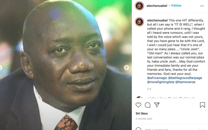 This one HIT differently, but all I can say is “IT IS WELL”, when I called your phone and it rang, I thought all I heard were rumours, until I was told by the voice which was not yours, that you have gone to be with the Lord, I wish I could just hear that it’s one of your so many jokes…..”Uncle Josh”, “Old man!” As I always called you, our last conversation was our normal jokes fa, haba uncle Josh….May God comfort your immediate family and we your friends and fans, thanks for all the memories. God rest your soul.