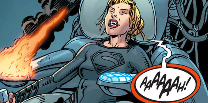 We all know that the Lantern Corps are a major part of the DC Universe, and for a time Kara joined the Corps - the Red Lantern Corps. Kara has always had trouble managing her emotions, so donning the Red Ring of Anger makes perfect sense. Kara had just failed in her quest to bring Krypton back when she was attacked by Lobo. With all her rage she unleashed her full power and killed the galactic assassin. Her rage drew a red ring to her, which then consumed her and she was transformed into a rage monster that flew through the galaxy killing anyone in her way.