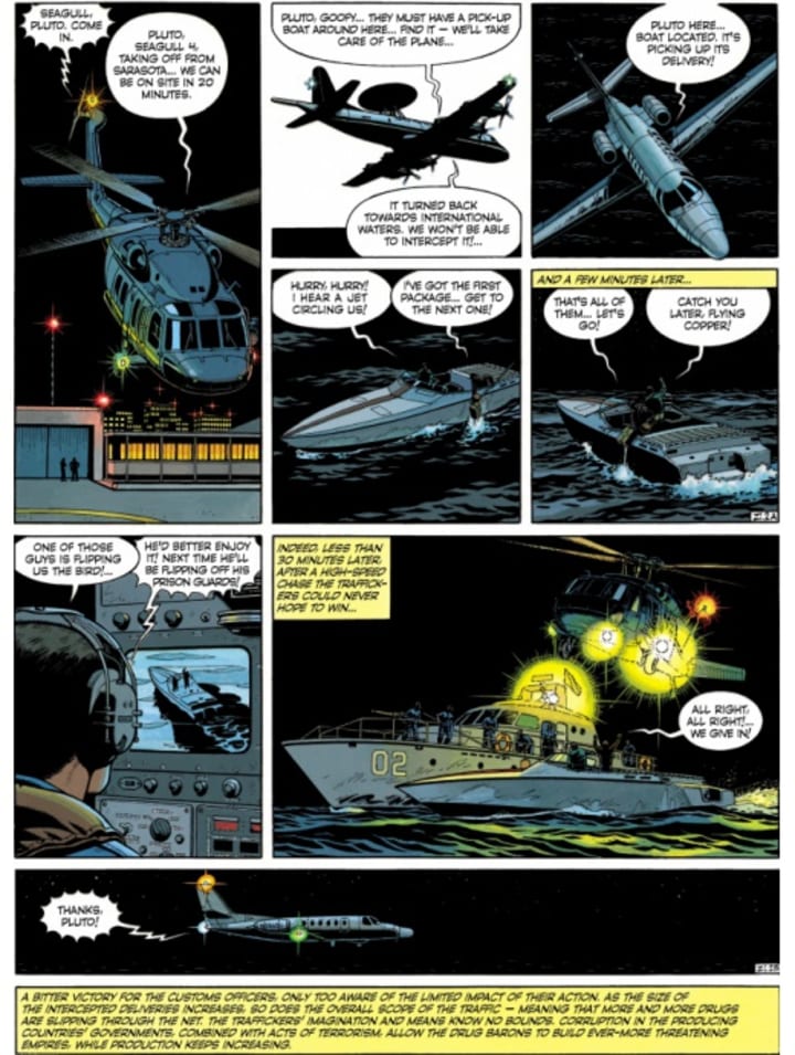 About to be sent to a small country in Central America, Buck, Sonny and Tumb are given a special briefing by two high-ranking US government agents. Under the cover of their official mission – train Managuan Air Force pilots in the use of their brand new F-18s – the three men are to try and overfly a strangely modern airfield suspected of belonging to a drug cartel. Problem: the airfield is in the middle of a no-fly zone…