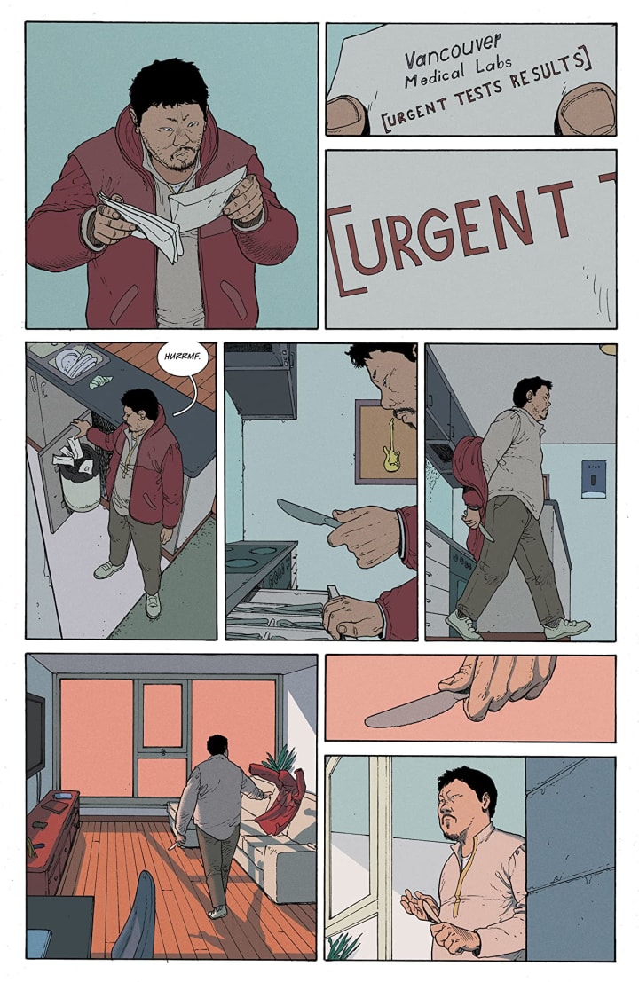 The interiors here are full of dichotomies, soft yet strong, delicate yet bold all combine to create this bloody beautiful work. It is so expressive and how we see the faces, facial expressions and body language does wonders in helping us understand the characters and the moments. While I would like to see backgrounds in almost every panel however, the strength of the work alone stands up when we don’t see them. The way they enhance and expand the moments are perfectly done and how we see them in the composition of the panels as they bring out the depth perception, sense of scale and the overall sense of size and scope to the story. The utilisation of the page layouts and how we see the angles and perspective in the panels shows a masterful eye for storytelling. The various hues and tones within the colours being utilised to create the shading, highlights and shadow work shows an exceptional eye for how colour works and how to maximise their effects.