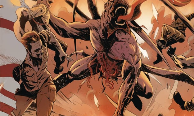 I am a huge fan of the way that this is being told. The story & plot development that we see through how the sequence of events unfold as well as how the reader learns information is presented beautifully. I like how we see the twenty years earlier segment and Gabe’s team faced off against the Aliens for the first time. This gives us great insight into him and his experience against the xenomorphs and it really helps us understand him just a tad bit better. The character development that we see is superb and it isn’t just the dialogue but the way they act and react to the situations and circumstances they encounter that really help to flesh them out. The pacing is great and as it takes us through the pages revealing more and more of the story and whose on the base it builds the tension of the story amazingly well.
