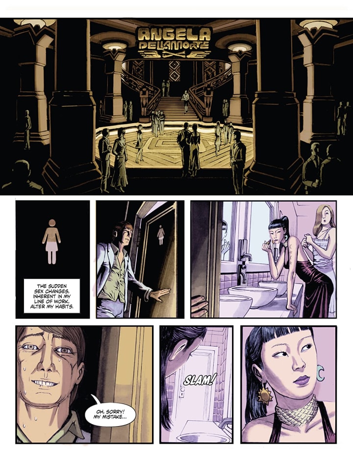 Discover the true history Angela, how she learned to switch bodies and came to work for Dr. Sibelius. Angela Della Morte first appeared in the antology Bastion Unlimited and later in Fierro magazine. This story were those early chapters where we see Angela’s first mission and her first “death.” Originally published in black & white, these stories are being published in full colour for the first time.