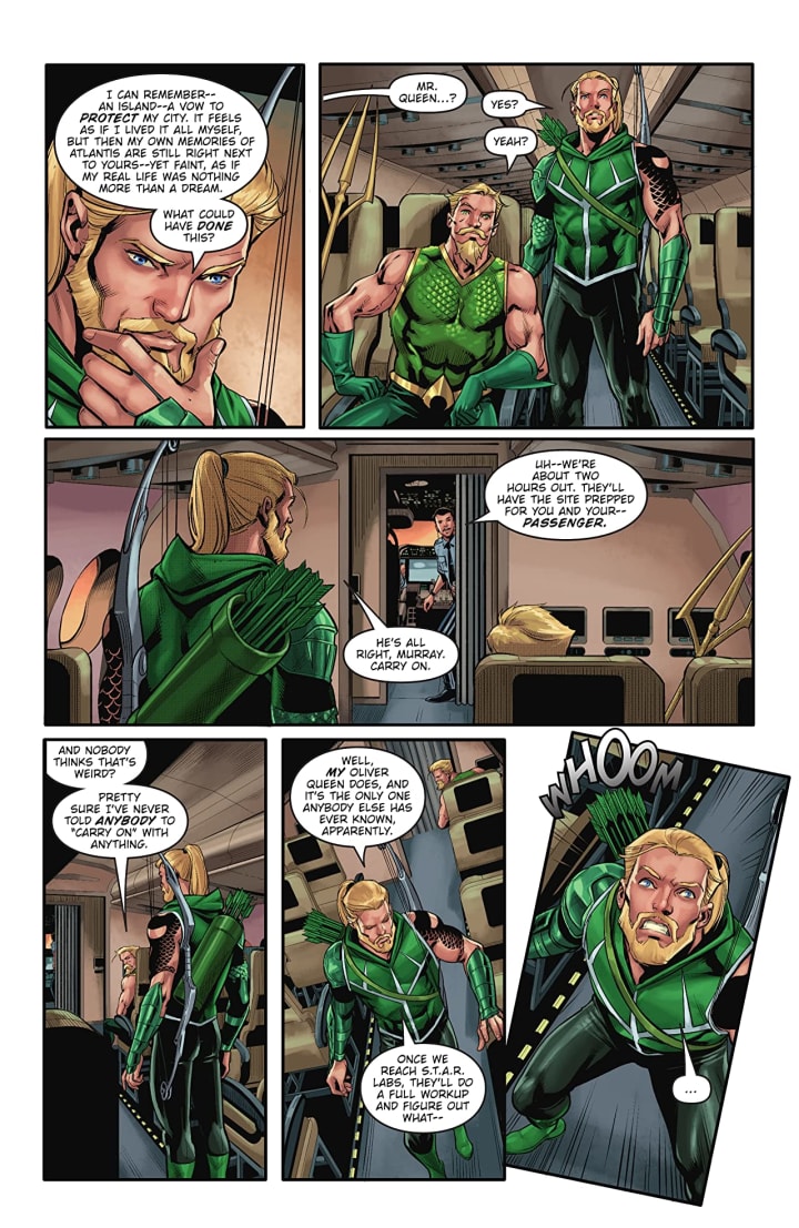 As Aquaman and Green Arrow work to piece together the mystery of the altered timeline, Scorpio’s General Anderton gets an upgrade of his own.