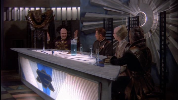 As for the makeup department, I have always felt that Babylon 5 had a serious advantage over most other science fiction shows. While, yes, there were some odd choices, such as the Centauri hair disasters, there were also some incredible hits. Rarely do we see a Narn or a Minbari who fail to look like an actual alien as opposed to a human wearing prosthetics. The Narn ambassador, G’kar, has what is easily one of the most impressive makeup jobs, even to this day. Despite having his whole head weighed down by a mound of latex and paint, he remains expressive and natural, without a single seam showing. The version of Delenn’s makeup in the pilot is vastly different -- and inferior, in my opinion -- to the version we see in the actual show, but both manage to be impressively believable. Compared to the sometimes minimal, oftentimes emotionally limited alien makeup seen on other shows from the same period, Babylon 5 pulled off an ambitious task and made it look easy in the process.