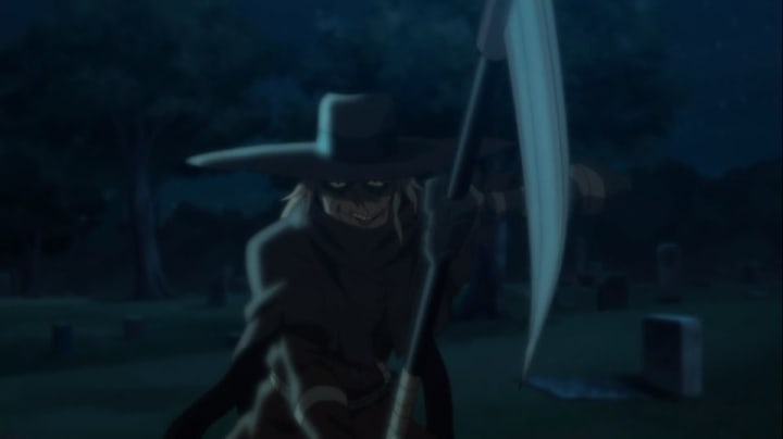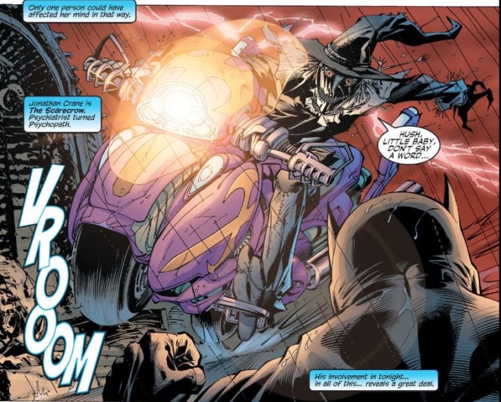 Perhaps the most impressive villain sequence involves Scarecrow, who is armed with a scythe. In the comics, he comes in on a motorcycle. But his tactics here are still very effective. However, one cannot help but wish that he sang the "Hush, Little Baby" lullaby to enhance his creepiness a bit more.