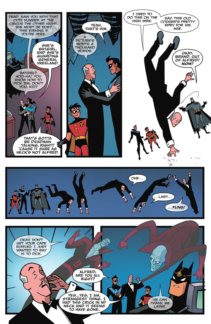 This book contains the best of both worlds it blends the animated series and the comics absolutely perfectly. I the show were still running, and god help I wish it was, this would have been a logical arc that would’ve ended with a sneering laugh or something letting the audience know that they’ve fooled the Bat into thinking he’s taken them down and they can go back to working in secret. That’s just me thinking aloud about what I’d love to have seen. This however is one heck of a great story and while Batman may not technically be all ages this is definitely thirteen and up thanks to subtle nuances alone that had me cracking up.