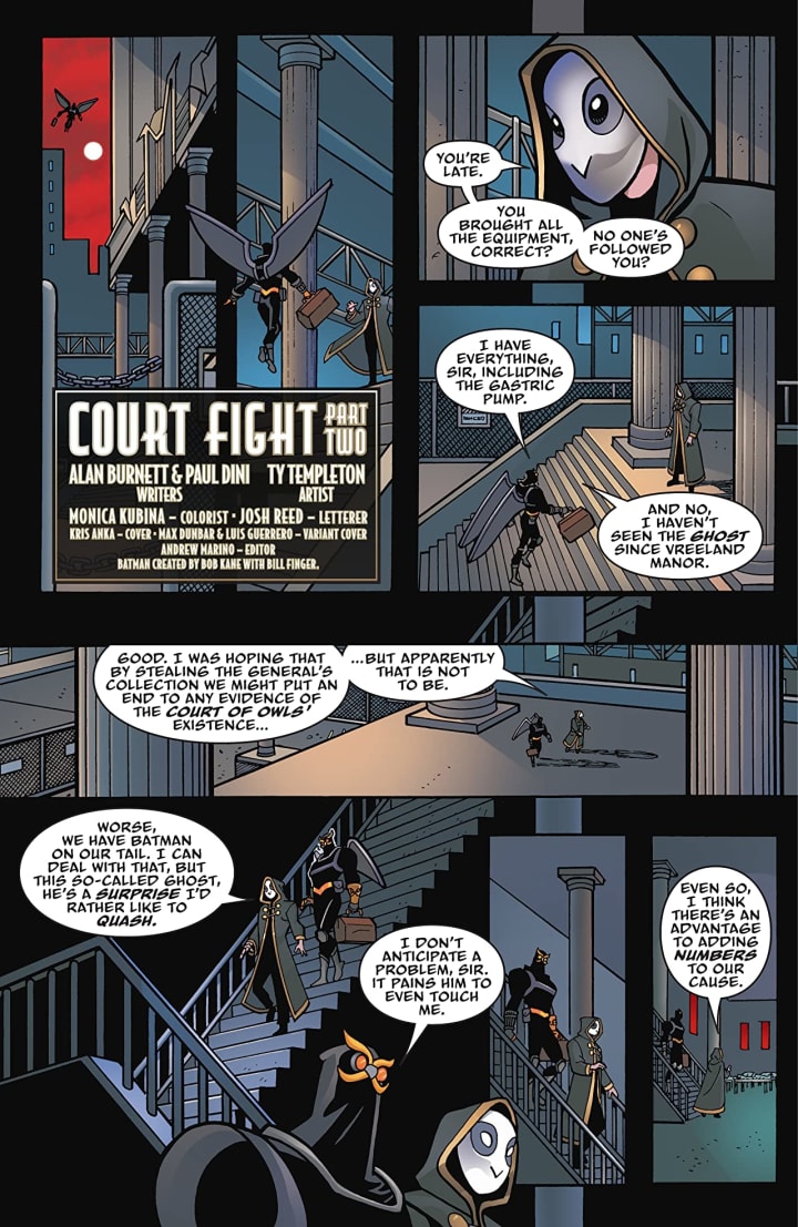 Thanks to some magical help from Zatanna, Batman can now see Deadman. Joining forces, the Dark Knight and the death-defying specter hatch a plan to apprehend the treacherous Talon. But the mysterious assassin gets the upper hand and captures Hamilton Hill Jr.! Can Batman and Deadman track the regeneration formula components and find the sinister Court of Owls' secret passageways, or will Gotham finally fall under the Court's full control?!