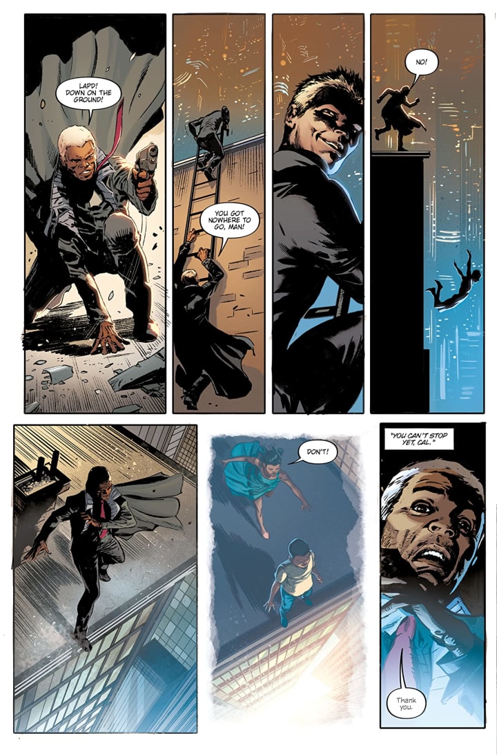 If this had been my first introduction to the franchise I’d be a die-hard fan of it. As it stands right now I’m a huge fan of this series and while this may only be the first arc’s conclusion I do know that I’m in this for as long as they will be putting it out. The writing here is absolutely stunning and the interiors here are mindbogglingly brilliant to behold. I love the drama and tension that is created here between Cal and the Replicant he’s been chasing and while they aren’t as widely known as they’d later come to be he naive thinks that he’s got a shot at arresting this person. There is a stellar chase scene and it manages to make us feel more like an action movie film than most films on the big screen. The way that this is put together is phenomenal and it just continues and continues to build momentum with each turn of the page.