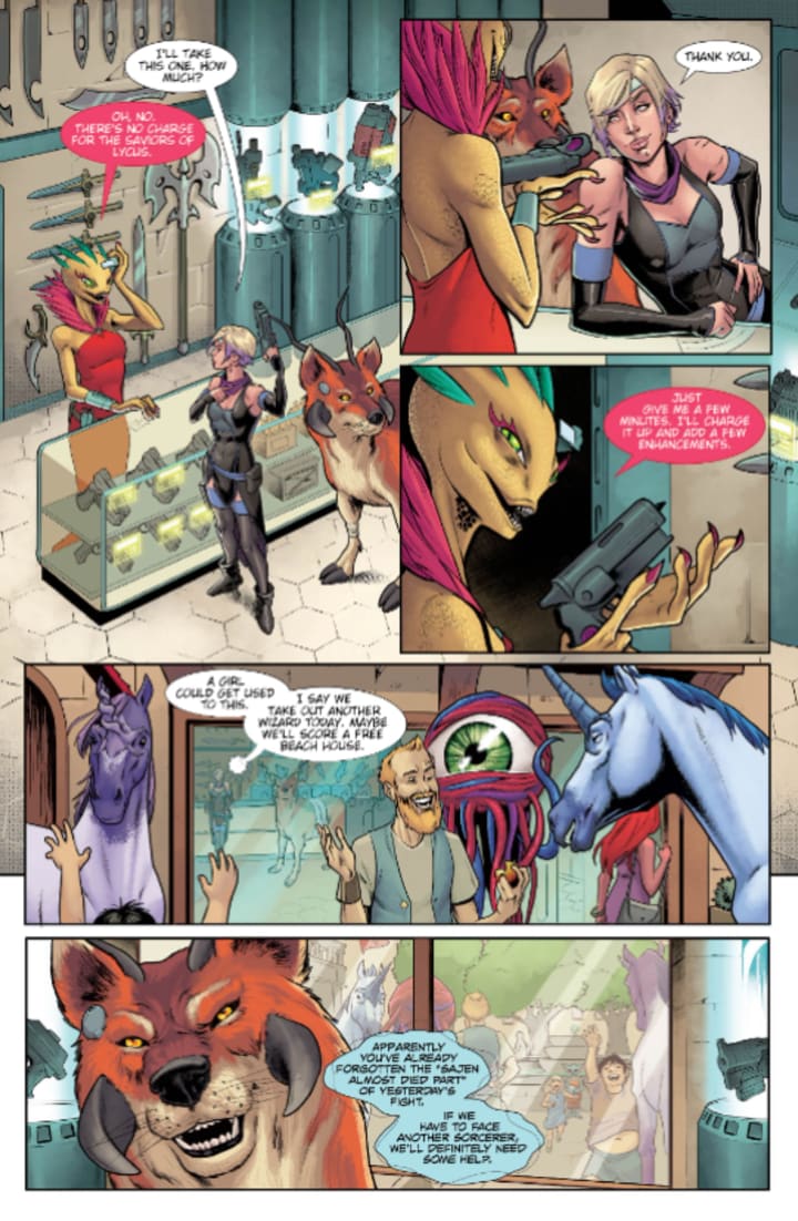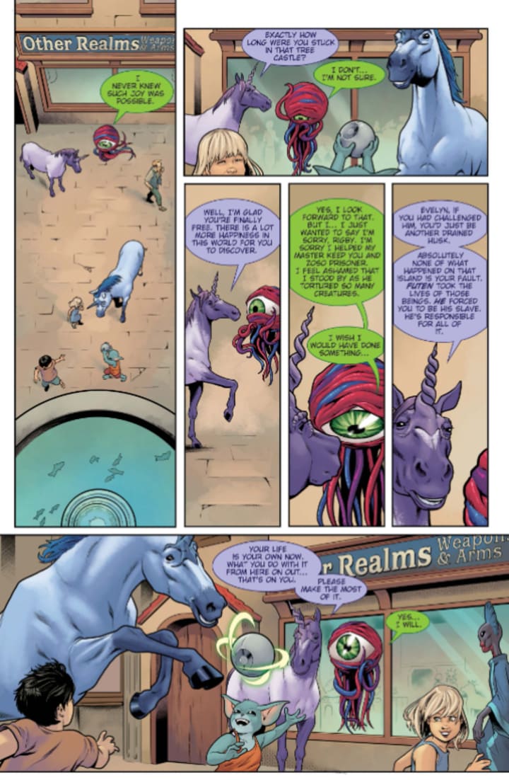 After defeating the western wind mage, Elodie and Sajen have a new mission. But to track down the other sorcerers they'll need to put their trust in the floating eyeball named Evelyn to guide them across the continent. Plus, Sajen has his work cut out for him if he wants to prevent Elodie from killing their unicorn travel companions, Zoso and Rigby.