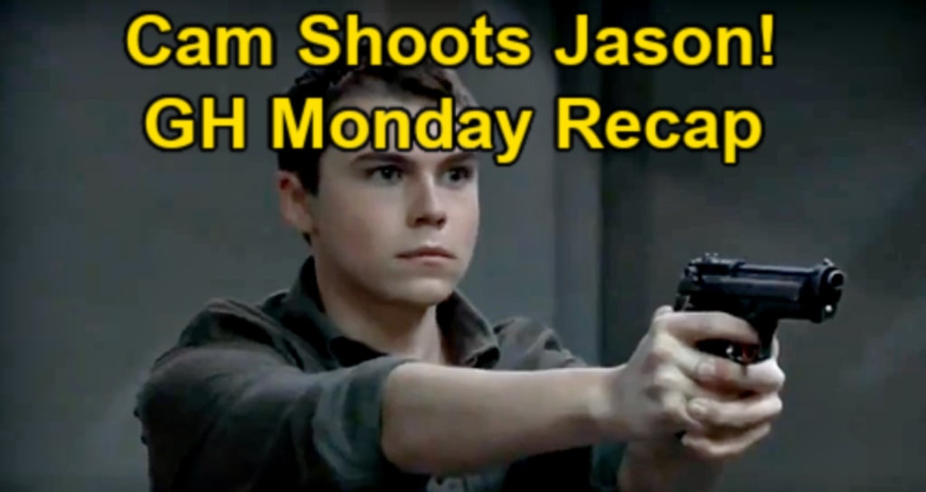 Cameron grabbed the weapon and was holding it as Brick announced to Jason and Britt that all was clear. Everything is being recorded on the video footage because the GH system rebooted itself and Spinelli was unable to spy any longer. As Jason emerges and assists Britt whose ankle is hurting, Cam shoots him in the back. There is an old saying that only a coward would shoot someone from behind but Cameron Weber is a troubled teen and not thinking clearly.