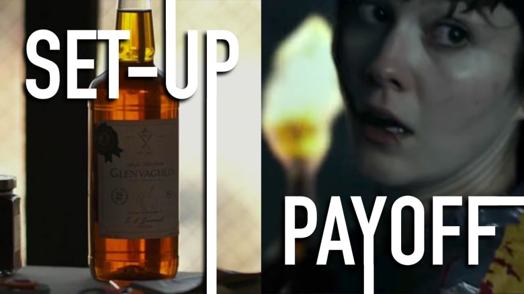 Chekhov's gun: the storytelling principle that says when a gun is introduced in Act 1, it must go off in Act 3. Also referred to as set-up and payoff.