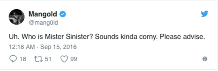 Damn, he would have made a very sinister Mister Sinister. Although Sinister is sure to return at some point down the line in the X-verse, it looks like he won't be played by Richard E. Grant. Fans will remain puzzled though, on the audio commentary for Apocalypse, Bryan Singer confirmed that Mister Sinister would first appear in Logan. Since then, Logan's director, James Mangold, sent a tweet that casts into doubt Sinister's appearance, but we aren't so sure: