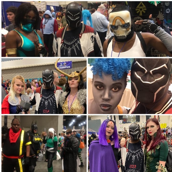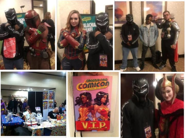 Sure enough the opportunity to go to a convention would present itself in early 2019 when I learned that my hometown of Greensboro, North Carolina was having a weekend of Comic Con at the Marriot hotel in the downtown area of the city. I called up my friends and made it clear that we had to get tickets to go and they were all down for the ride. It was in late January of 2019 that I would go to Comic Con for the first time ever and it was an incredible experience that was almost too spellbinding to put into words. When we went to the convention we didn't just go as fans, we cosplayed as well. I dressed up as Marvel's Black Panther, one of my friends went as Black Panther's cousin Killmonger, and my other friend went as Marvel's Thor. The first few minutes inside the convention were almost overwhelming, it was like seeing a childhood dream come true. I'm looking at all of these cosplayers dressed up in everything from Marvel, DC, Star Wars, Anime, Harry Potter, Lord of the Rings, among so much more. For every person who I saw that also saw me it was just an excited greeting, with enjoyable acknowledgement for how great their attire was, and a must have of picture taking.