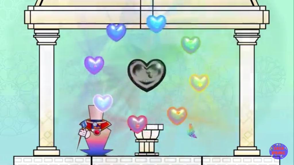 After a journey visiting the afterlife, learning of the past, as well as the power of the Purity Heart, betrayal, and guilt, the small groups who initially feuded found themselves right back where the Chaos Heart was born: the castle's wedding hall where he forced the fair Princess Valerie to marry the monstrous King Daniel. The Count looked at the rainbow Pixl very seriously.