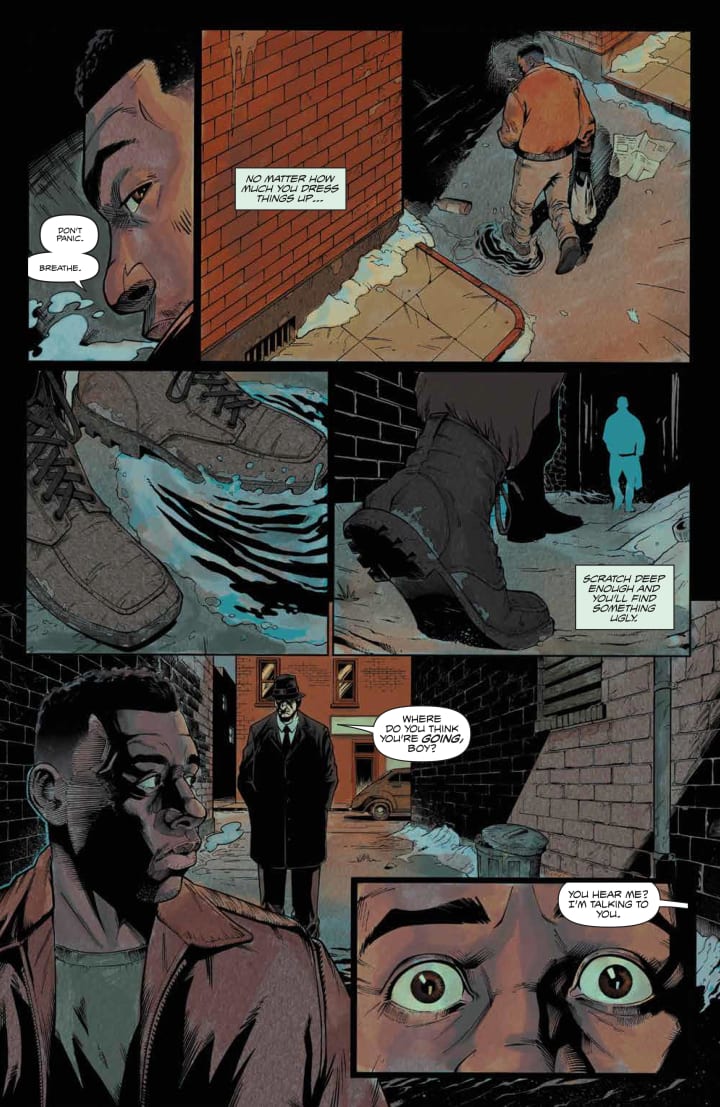 Wow what a great first issue introduction to a series this is. I am really rather impressed with the story that we see and how it is set after WWII in a time when racial inequality was still a very real and dangerous thing. What Latoya does with the opening is a powerful thing and it is meant to make the reader uncomfortable and it succeeds in doing that and then some. From the language used to the overall tone of the moment what we see is a reminder not only of the recent past but in many ways what we are currently experiencing now.