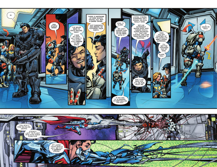 Deathstroke in...SPACE?! The secret organization T.R.U.S.T assigns Deathstroke's new team an over-the-top mission: head into deep space and stop Cyborg Superman from spreading his consciousness to every machine in the Multiverse! But as they battle the dangers of space, Black Canary begins to uncover the truth about T.R.U.S.T and exactly why they want to control Deathstroke…