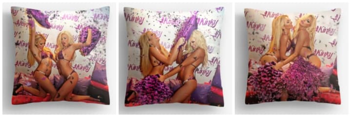 In the moments right before the coquettish attack, April Eve finally relaxes back into her sultry character; however, our sprightly lil' Khloe is unable to contain her laughter and surprises April with a fluffy BAM! NEVER BEFORE SEEN PHOTOS (of an actual) SUPER MODEL PILLOW FIGHT between these two feisty cousins! "