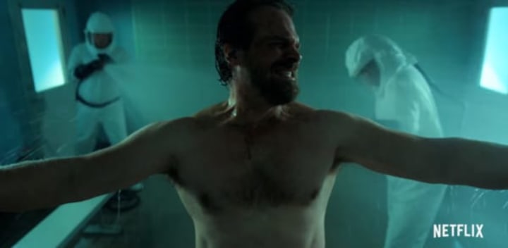 Another glimpse of Hopper shows him in a decontamination suit. If Hopper has brokered some kind of deal with these scientists, what will they offer him? Could this turn him into an agent for Hawkins National Laboratory?