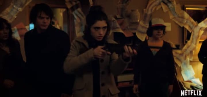 The final shot of note depicts the majority of the Stranger Things main cast in the Byers home, all armed up and ready to fire on an unseen adversary. Is it the Shadow Monster, or someone/something else?