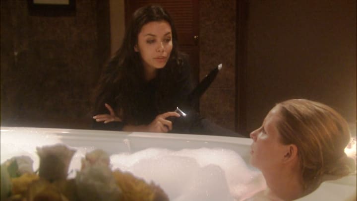 I remain awestruck, as a fan of Eva Longoria, that before she was "Desperate," she was deranged in the world of soaps. Between 2001 and 2003, Eva Longoria recurred on Y&R as Isabella Braña, who began an illicit affair with Paul Williams. That affair actually resulted in a pregnancy, and regarding Paul, he was planning to raise their son with Isabella...until wife Christine found out that Isabella was sent by Michael Baldwin break up that marriage. She tells Paul, they stay together, and Isabella, well, she took it well. All she did was try to frame Christine for her own murder and then attempt to off Christine while she was bathing. That's all.