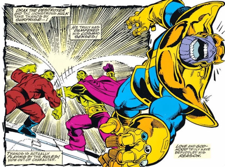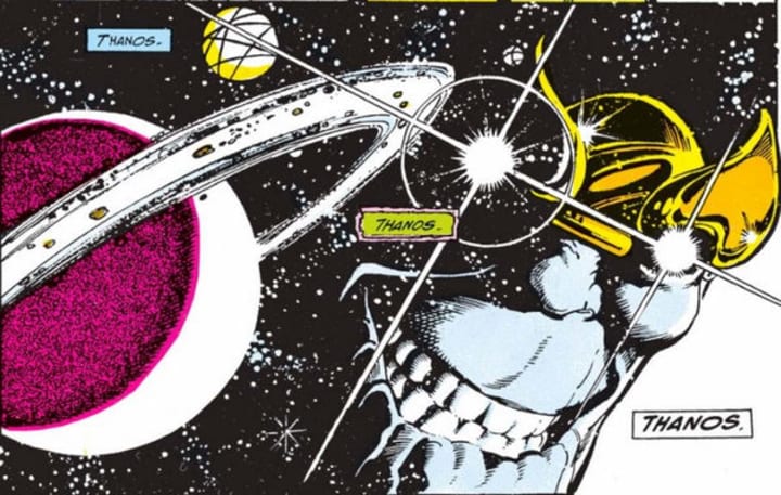 The Infinity Gauntlet miniseries was perhaps one of the most powerful comics of all time, with Jim Starlin penning a surreal adventure in which all of reality fell under the sway of Thanos. The story kicked off with Thanos already in possession of the Infinity Gauntlet itself, and burning with desire to earn the affection of his mistress Death. To give an immediate sense of scale, Starlin's narrator was a defeated Silver Surfer, who fled to Earth for help. Before the first issue was over, Thanos had used his incalculable power to literally eradicate half the life in the universe.