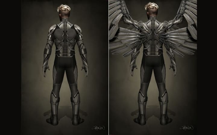 The design of Angel is ferocious. I love the detail on his wings, with jagged edges that Angel uses for slicing and dicing (as Blob learned at a cost). But when the injured Angel is mutated by Apocalypse, things truly get interesting. That scene is fantastic, and leaves us seeing Angel as a true threat.