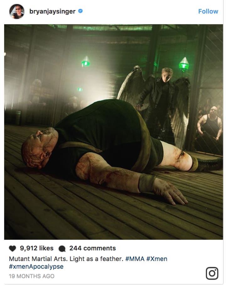 We're introduced to Angel in the cage-fights, and he's a ferocious warrior. X-Men: Apocalypse abandons the more pleasant, charming Angel character in favor of a brooding, violent man who seems to revel in the violence he casts upon his fellow mutants. Sure, he takes the opportunity to escape when offered, but you definitely get the sense he'd be happier back in the cage.