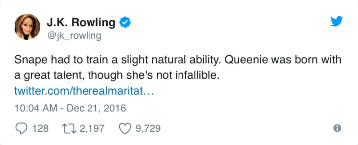 As J. K. Rowling has now confirmed, there's a reason Queenie is a more gifted Legilimens than Snape.