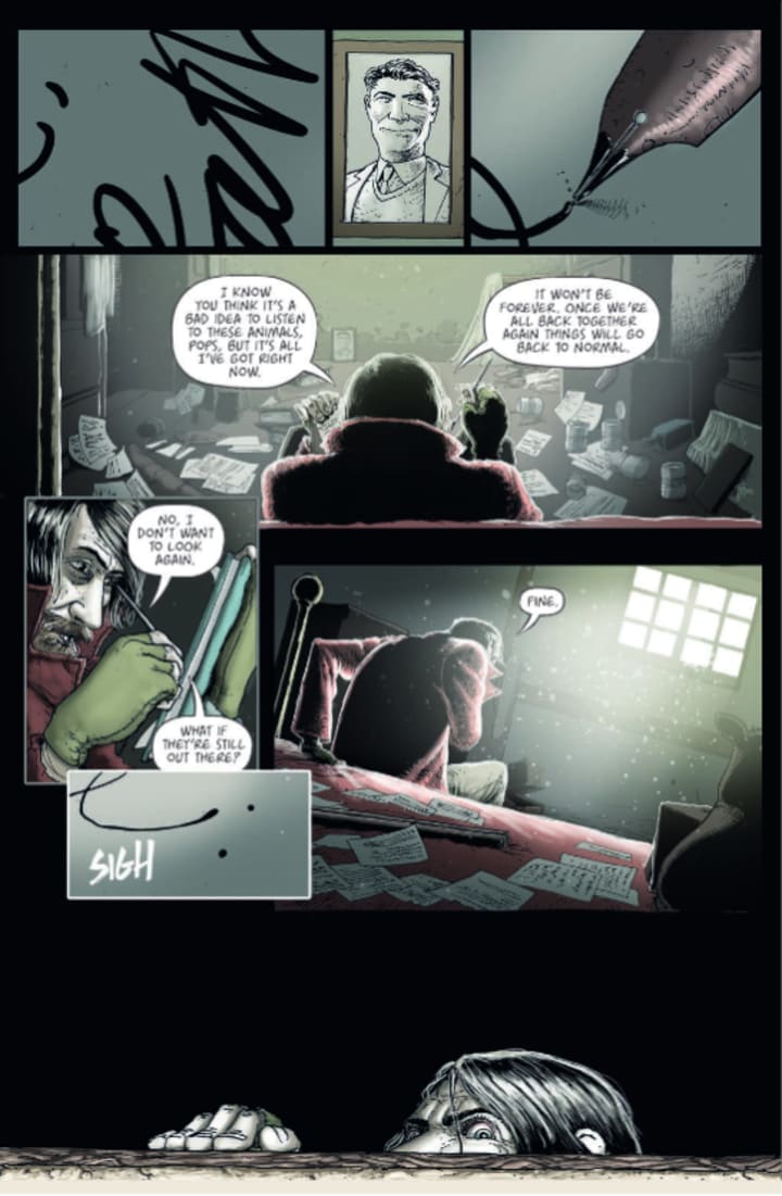 I love, love, love the way that this is being told. The story & plot development that we see through how the sequence of events unfold as well as how the reader learns information is presented exceptionally well. How the story transitions this issue between Frank and the other characters is extremely well thought out and executed ensuring that this comes to a natural conclusion. The character development has been extraordinary since day one and it never slowed down as we see the characters change, grow and evolve as the story moves forward. The pacing is excellent and as it takes us through the pages it keeps the reader engaged as well as riveted to the page.
