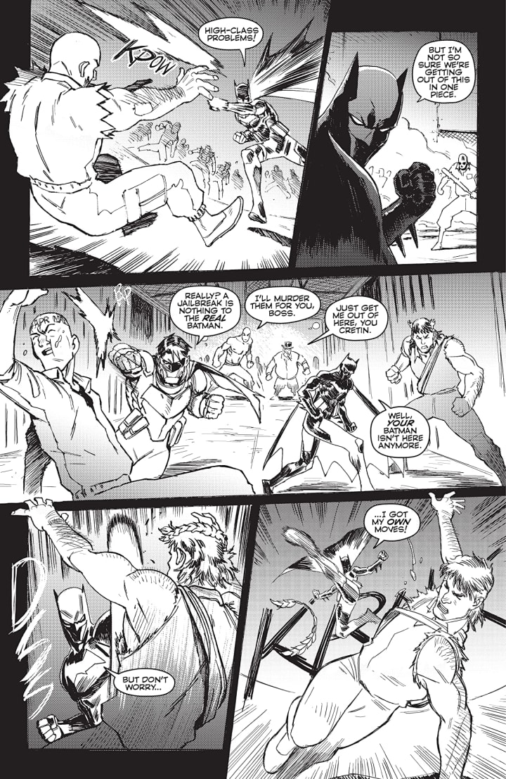 Red Hood comes mask to mask with Gotham’s most wanted, the Next Batman, as the future of the Bat-Family continues! It’s a deadly showdown made worse by the horde of psychopathic criminals who want to kill them both! And finally, the new Gotham villain Warmonger reveals himself!