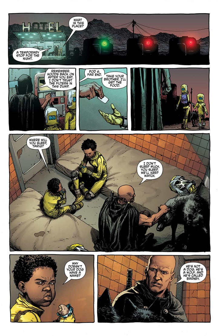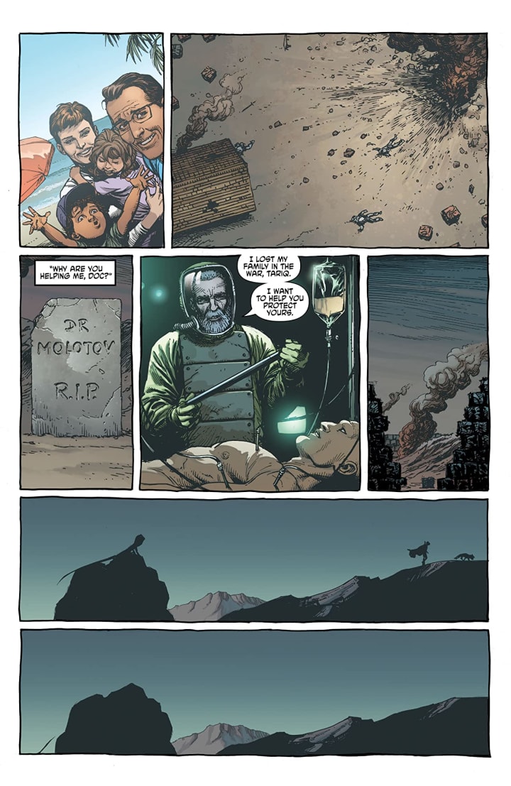 This is an exciting book and that it’s been pretty different from anything and everything that I’ve been reading doesn’t hurt matters any either. I know there’s two more issues left in this story arc to kind of tie up these threads and hopefully get the next arc under way as well, the mention or idea of what will be forthcoming would excite me. So there’s still time for Tariq to end up taking care of the kids in lieu of his own having passed away. There is something about that which appeals to me and with everything we see happening I think its a good fit.