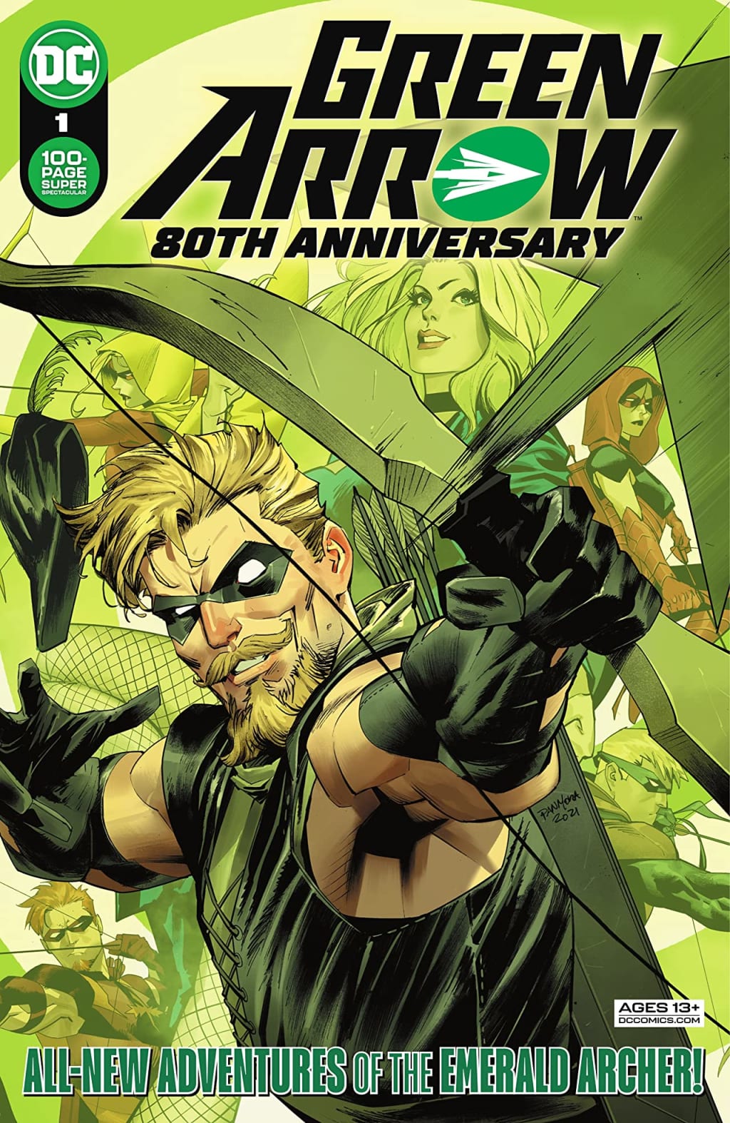 CELEBRATING THE EMERALD ARCHER’S 80TH ANNIVERSARY! For the last eight decades Green Arrow has been one of the premier (and loudest) characters in the DCU, always at the forefront of where the superhero genre is headed. This oversized anniversary issue follows in those footsteps, as an all-star lineup of Green Arrow creators, alongside some of the gifted creators of the modern era who have been inspired by Oliver Queen, unite to pay tribute to the Battling Bowman. See what the past, present and future have in store for Oliver Queen, Black Canary, Connor Hawke, Arsenal, Red Arrow, Speedy, and more in this epic special!