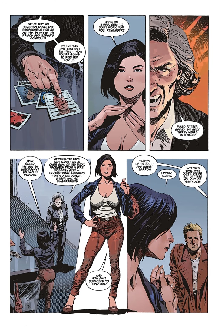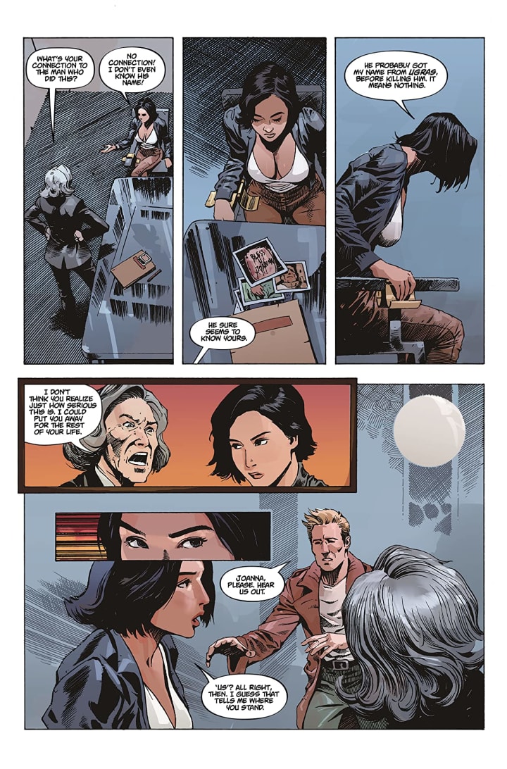 The deeper we go down the rabbit hole the more impressed I become with this book. The last page's shocking cliffhanger ending certainly took me by surprise and it’s things like this that really keep the reader coming back for more. The premise is fantastic and Joanna’s backstory lends credence to her doing what she does so it’s really the full complete package and if she lives through this adventure and stays out of jail then there’s a world of possibilities open for future stories to be told. Also I like the way that the reader is engaged in the story here. We see Joanna talking to the Government folks and it is crystal clear she doesn’t trust them no matter how much they try to pigeon hole all this on her and her attitude is phenomenal. She’ll get to the bottom of the mystery. These folks be damned and I love every moment of what I see through her eyes.