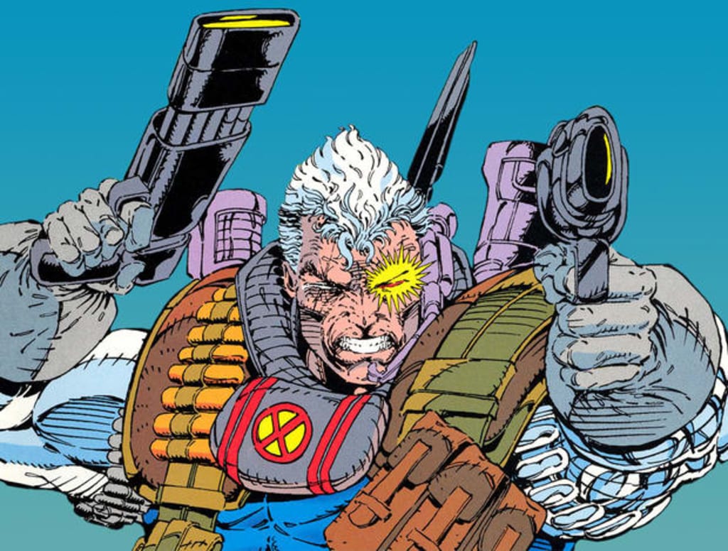To fans of the 1990s X-Men comics, that is your typical Cable; a walking wall of muscle who carries a bigger arsenal than your average army. He's a seasoned, battle-scarred warrior with grey hair and a cyborg eye. Now, while this is your traditional design of Cable - it's true to Rob Liefeld, certainly - most artists since then have slimmed him down and cut down on the number of guns (kind of figuring he has to walk while carrying them).