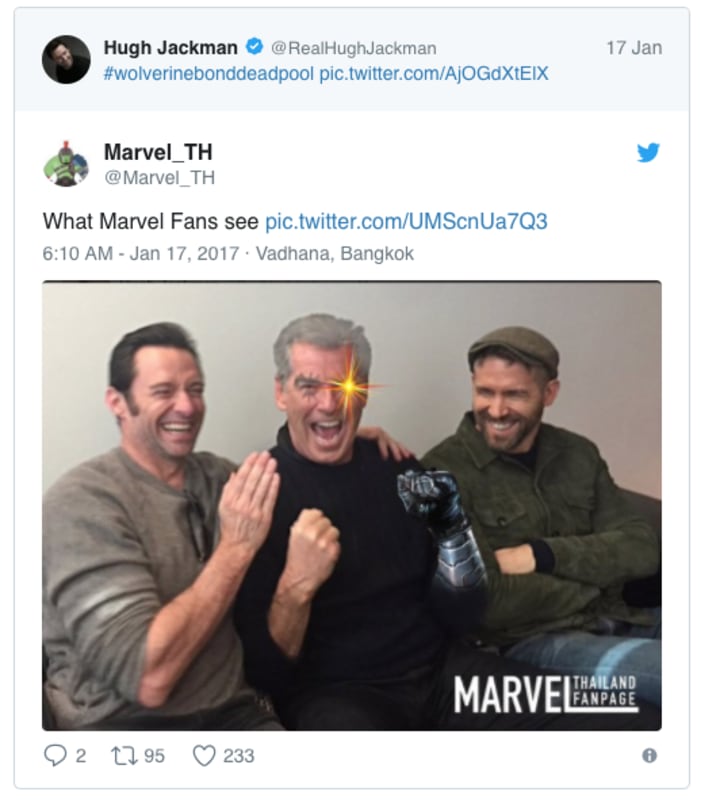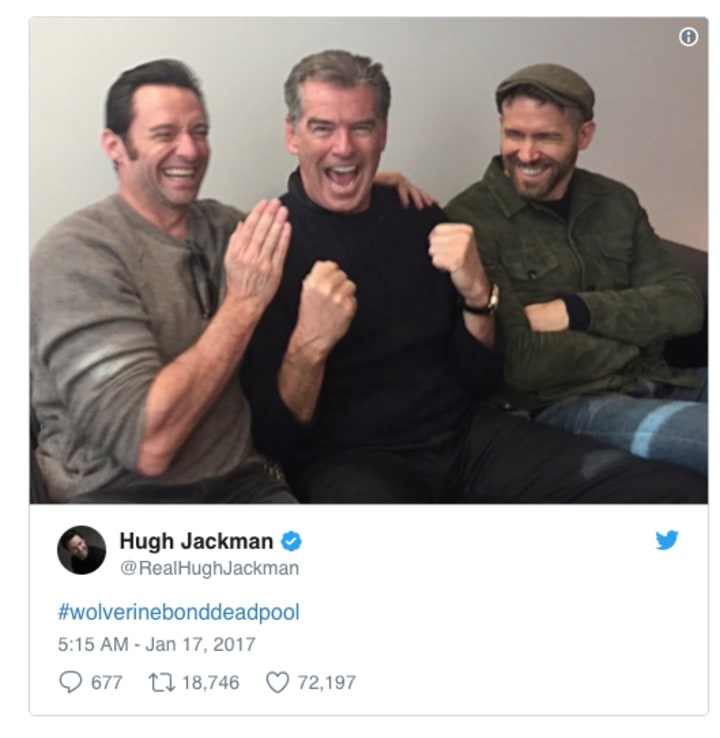That's just the kind of rep you want for someone who's about to become a one-man warzone. We're getting some tantalizing hints that suggest Brosnan may indeed be about to join the ranks of the superheroes! First, #HughJackman dropped this on social media: