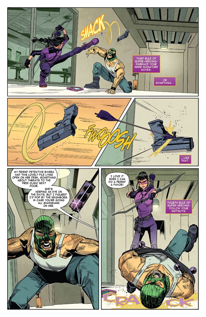 While the interiors give off a more teen plus vibe to them the story is anything but. Then again with Kate’s background being what it is that comes as no surprise to me. I think this is starting out to be a perfect vehicle for Kate right now to showcase who she is and where she is in life and how she manages to merge the worlds of P.I. and Superhero beautifully. This has some strong, interesting writing and solid characterisation alongside some superb interiors making us cheer for joy that Kate’s back in the spotlight.