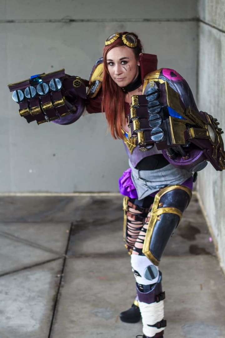 I also don't play a lick of League of Legends, but the same concept as Overwatch applies although I don't know nearly as much as the characters. There's actually a story that goes with this picture that involves me getting hurt. And before you ask, no, it's not because Vi punched me in the face. I actually saw this cosplayer painting those hands on Friday and she managed to get them done by Saturday with a bit of help. Boss.