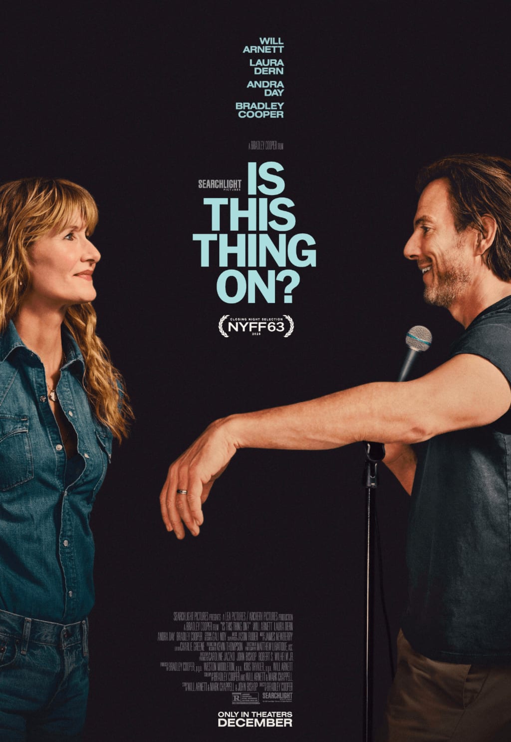 “Is This Thing On?” is an American comedy-drama based on a true story from the life of Liverpudlian comedian, John Bishop, but relocated to New York. It stars Will Arnett, playing Alex Novak, a depressed man with a failing marriage to Tess, played by Laura Dern. As we join them, the couple are beginning to live apart, having decided that the marriage is no longer working. They are figuring how to live separately and parent their two boys.