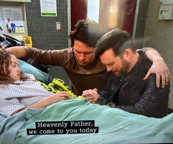 Ironically, the following day, which was on Thanksgiving I saw something quite opposite play out. I watched an episode of the soap opera Days of Our Lives on Peacock were Brady Black (Eric Martsolf) and his son Tate Black (Leo Howard) fell to their knees in a hospital and began praying.