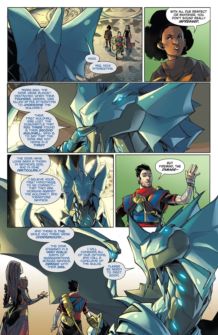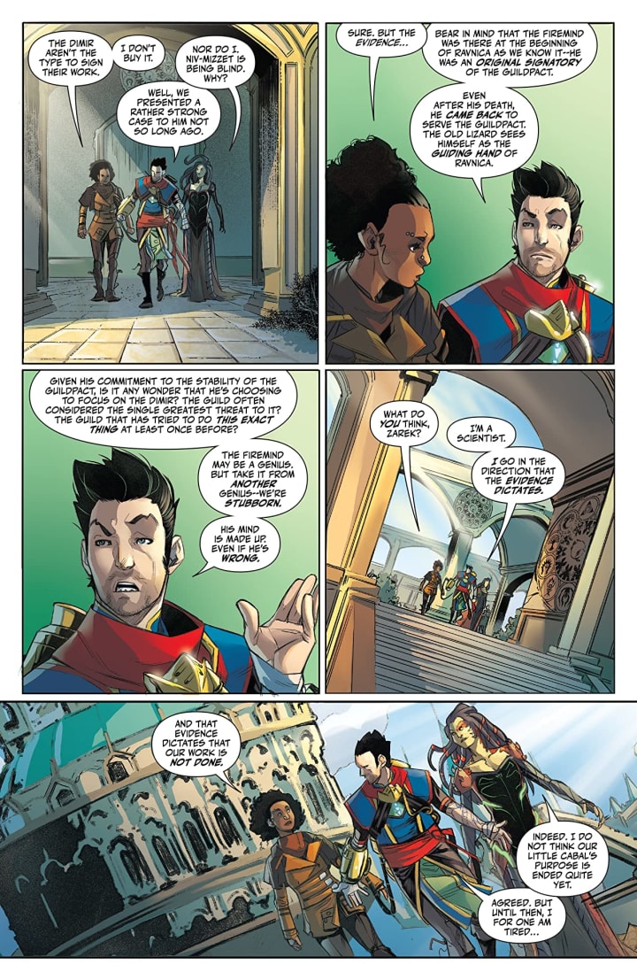 Having discovered Duskmantle, Kaya, Vraska, and Ral will meet with the secretive Guildmaster of the Dimir, who may be the key to unraveling the mystery of the assassination attempts. Meanwhile, the plot against the trio is beginning to turn Ravnica itself against them…