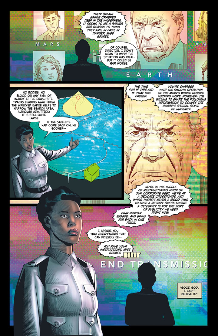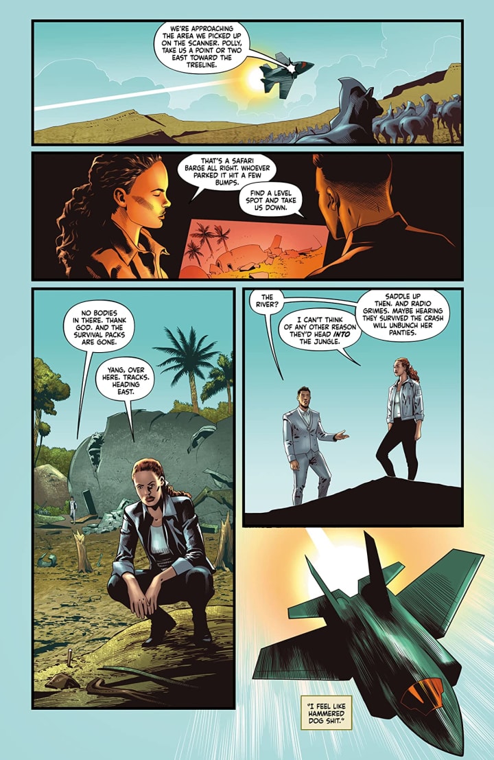 The interiors here are absolutely great! The people, their faces and facial expressions not to mention the body language really helps further the characterisation beautifully. The linework we see through its varying weights and techniques raises the quality and level within the detail work to some new heights. The backgrounds we see utilised are amazing in their quality as well and the rock formations and how we see the grain within the stone is mindbogglingly brilliant to behold. The clm position within the panels not only showcase the talent but they also bing us this fabulous depth perception, sense of scale and that overall sense of size and scope to the story. The utilisation of the page layouts and how we see the angles and perspective in the panels shows a masterful eye for storytelling. The colour work is bloody brilliant stuff! How we see the various hues and tones within the colours being utilised to create the shading, highlights and shadow work blows me away. The creativity and imagination we see, like that alligator fish or the natives, really takes this to a whole new twisted place that we cannot pull ourselves away from.